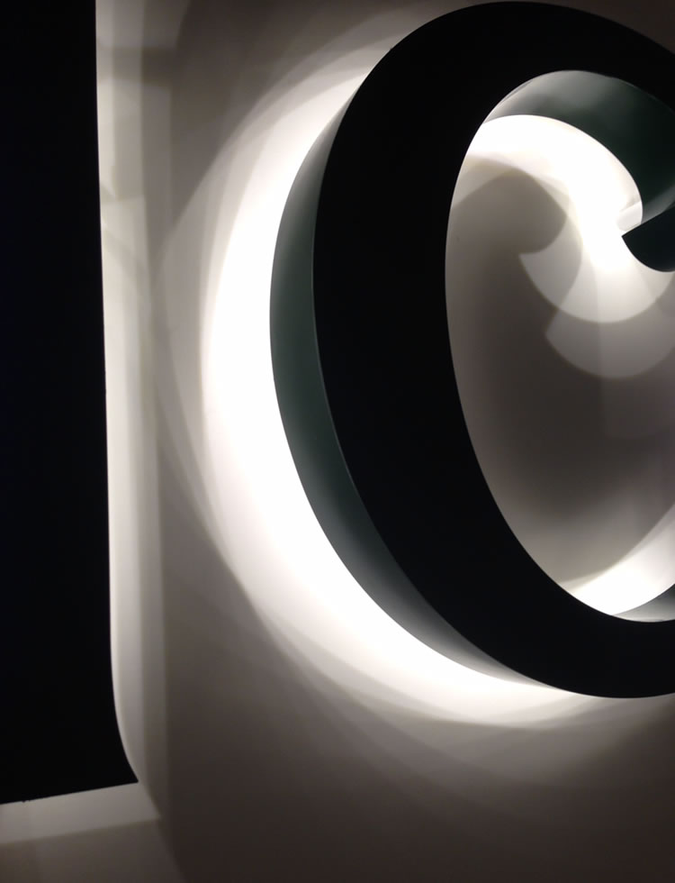 SUS素材などを使用するので雨に強く、シンボルになる大きな文字を作ることが出来るのが最大の特徴。よく使用されるのは、店舗のメインSIGNや建物外部につく企業の広告SIGNとして使われています。